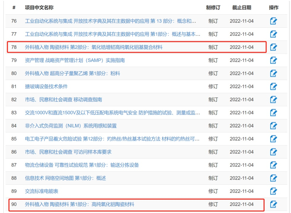 氧化鋁生物陶瓷、ZTA等182項擬立項推薦性國家標準項目公開(kāi)征求意見(jiàn)